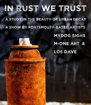 Next week things get rusty. Opening on First Thursday, October 4th, we have MYDOG SIGHS’ In Rust We Trust show. Featuring the work of Can Man Mydog Sighs as well as the rust of LOS DAVE, M-ONE and the 3d work of HAYLEY KENDAL. The show will open on Thursday 4th 6pm and run for one week at Cultivate. Getting lots of e.mail and phone calls about this show, especially about the cans and the limited edition print release from Mydog that will happen at the show. There will be no advance sales or on-line previews for this show, we open at 6pm on Thursday 4th and all work will go on sale at the gallery that evening, photos will go up on line on the Facebook page straight after the Thursday opening and anything unsold, including any of the 12 framed cans, will be available on line that night…