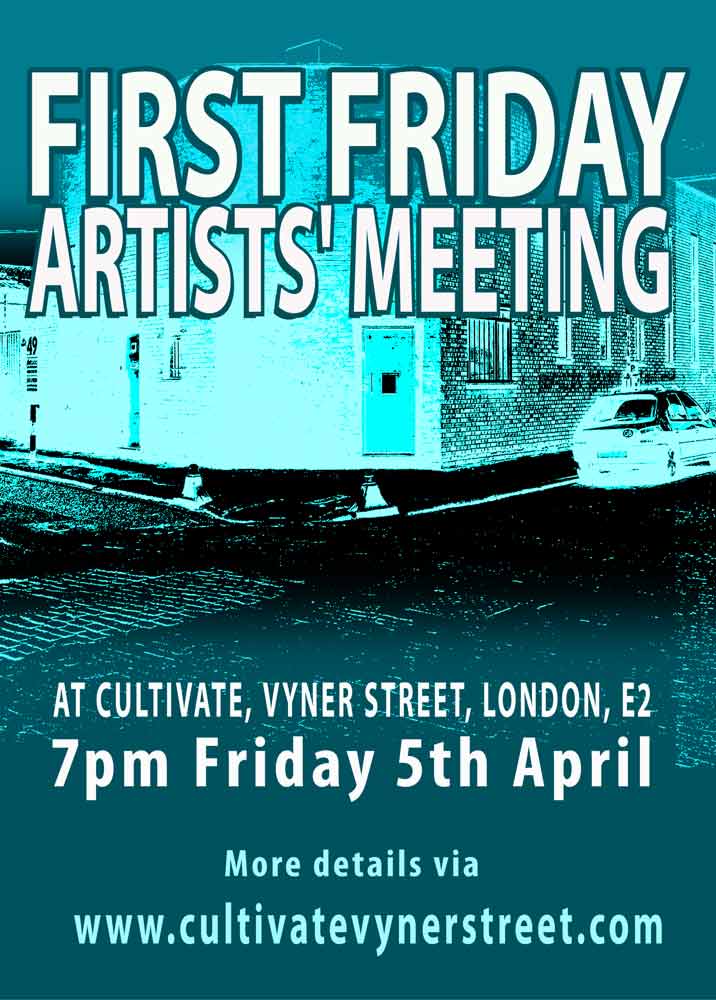FIRST FRIDAY ARTIST NETWORKING MEETING @ CULTIVATE. VYNER STREET.