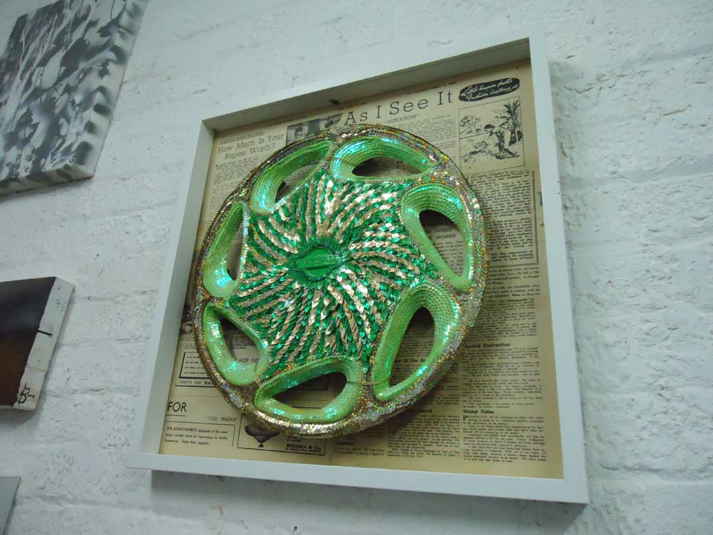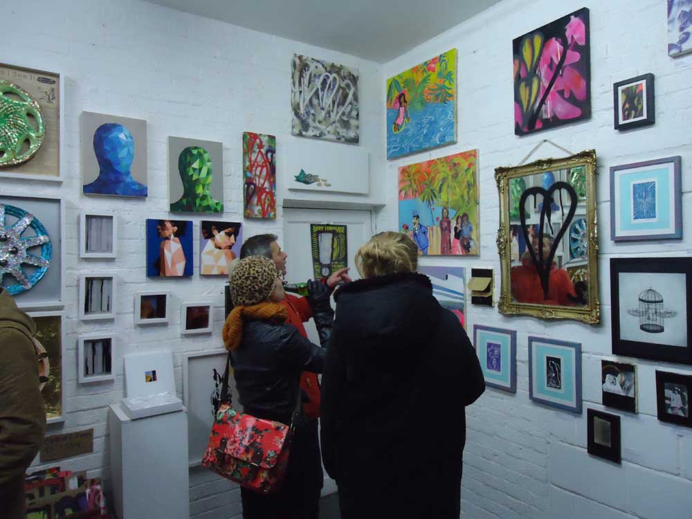 Art is For Life, Not Just Christmas opened last Thursday, thanks to everyone who braved the cold and showed up for the opening, I think we can claim it was a good night, I hear reports of hangovers on the morning after the night before, and I certainly had a healthy mess to clean up on Friday morning. Big thanks everyone, always good to see people, show the art and socialise at an opening, always good to sell a piece or two of art as well, and as this is Vyner Street, there’s always other things happening in other spaces along the street – that’s the thing about this street, even though some of the galleries choose to hide behind their signless closed doors, there’s always something going on. Last Thursday evening it was the combined open doors of Cultivate and Wayward fusing together, do love wintertime openings, far more atmosphere and warmth. Although I must say I haven’t got a lot or warmth to share with the person who helped himself to a full bottle of wine as he left – you know the score, I know who you are, this is an artist-run space, and we’re not talking trust-fund artists here either, there’s some serious sacrifice and commitment gone in to this space, there’s a principle here. Have to say here that we were a little dismayed to look in the gallery donation tin on Friday morning aswell – we haven’t got a sponsorhip situation going on here, we haven’t got a mountain of Japanese lager to dish out free like that lot down the street. I put my hand on my own pocket for those cases of “free” beer and questionable wine, I know cheap bottles of larger and bottles of supermarket red aren’t the height or indulgence, but I was expecting to find a little more than a splattering of copper and small denomination silver in the tin. Told you before, we’re skint, don’t be drinking all our beer and making off with our (admittedly cheap) wine without at least making something near a reasonable donation – hey, come on, don’t take the proverbial!