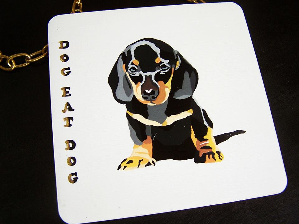 evh_dogeatdog1 Published June 12, 2015 at 960 × 720 in Emma Harvey on rescue dogs and her Dog Eat Dog pieces for the 2015 Art Car Boot Fair Next →