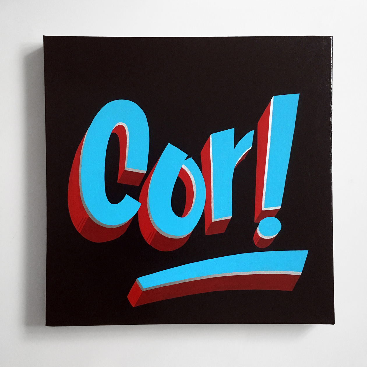 121_qba_cor Published April 24, 2017 at 1260 × 1260 in CULTIVATE PRESENTS: Something Black, An Art Exhibition… ← Previous Next → 121: Artist: QUIET BRITISH ACCENT, Title: Cor!, Medium: : Gloss Paint & 1Shot Signwriters Enamel on Canvas Size: 50cms x 50cms