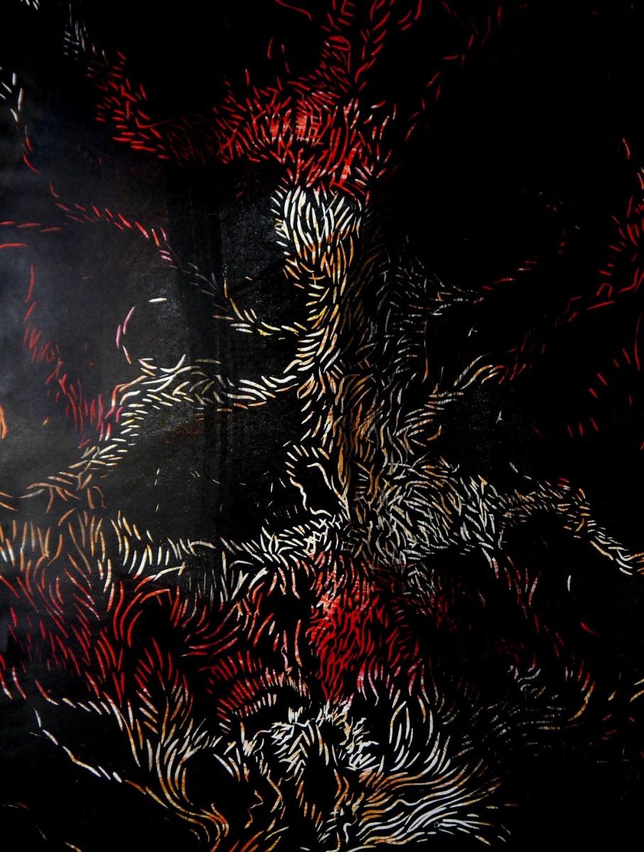 150_samuel_lee_divorceinthedark1 Published April 24, 2017 at 907 × 1200 in CULTIVATE PRESENTS: Something Black, An Art Exhibition… ← Previous Next → 150: Artist: SAMUEL LEE, Title: Divorce in Darkness (2016) Medium: monoprint woodcut, size: 55 x 75 cm.