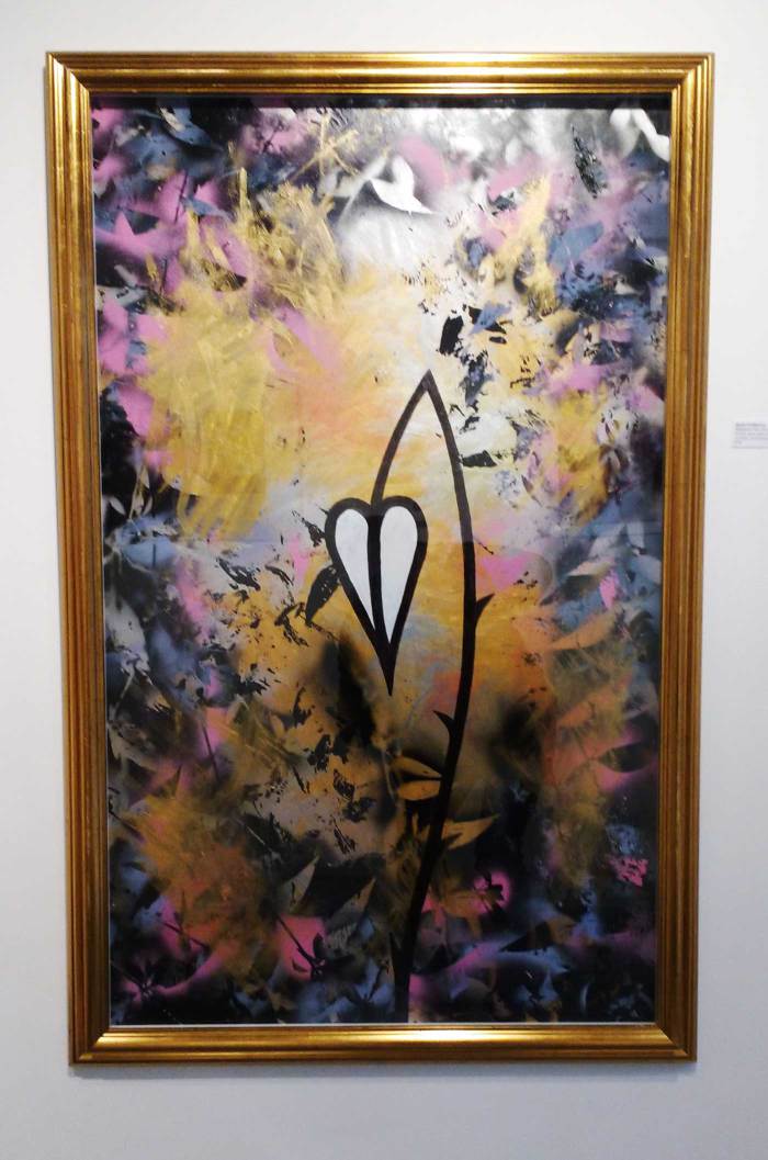 159_sw_fragile_opening_114 Published April 24, 2017 at 700 × 1057 in CULTIVATE PRESENTS: Something Black, An Art Exhibition… ← Previous Next → 159: Artist: SEAN WORRALL: Title: Sometimes They Have Thorns, medium: Acrylic, spray paint, marker pen on board in found frame