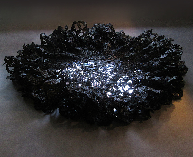 58_diana_burch_contemplationLR Published April 24, 2017 at 649 × 526 in CULTIVATE PRESENTS: Something Black, An Art Exhibition… ← Previous Next → 58: Artist: DIANA BURCH, Title: Contemplation (2017) Materials: Crocheted, heat treated plastics, Mylar. Dimensions: 90cm diameter x 15cm h