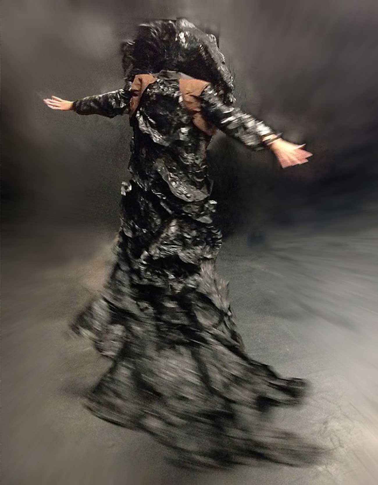 61_danaBurch_DecayCoat2 Published April 24, 2017 at 1300 × 1668 in CULTIVATE PRESENTS: Something Black, An Art Exhibition… ← Previous Next → 61: Artist: DIANA BURCH, Title: The Decay Coat (2017), Medium: Heat treated and bonded plastics, textile, Size 270cm x 75cm