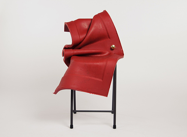 79_ella_brame_red-door-with-leags-15.8_613 Published April 24, 2017 at 613 × 451 in CULTIVATE PRESENTS: Something Black, An Art Exhibition… ← Previous Next → 79: Artist: ELLA BRAME, Title: Sitting door (2017), Medium: Rubber, Brass, Chair. Size: dimensions variable. 3’2ft x 2ft