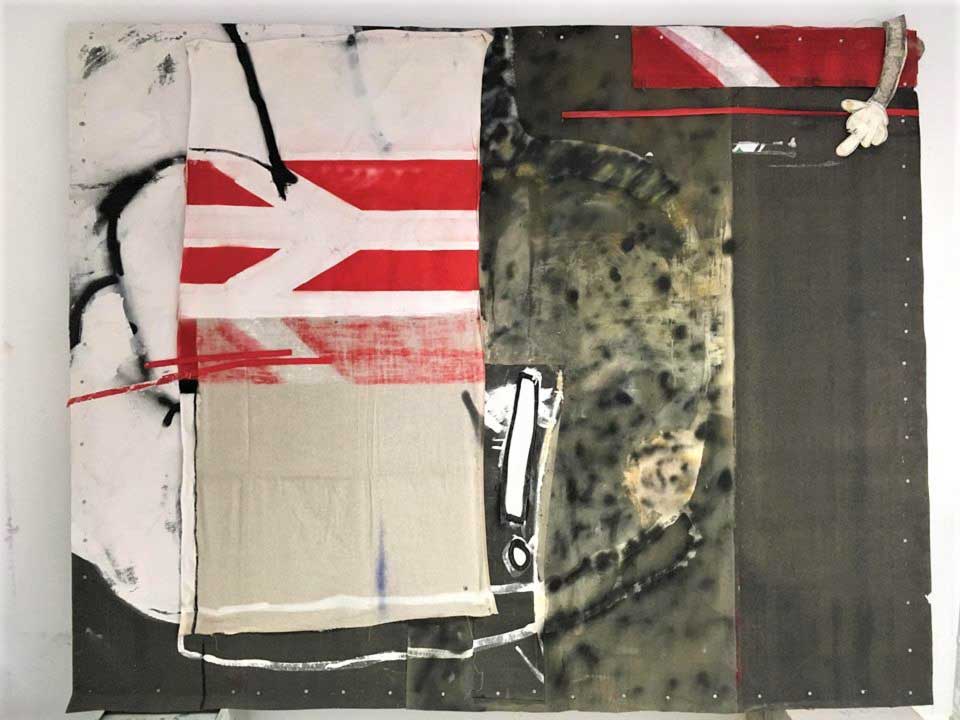 130_yasmine_robinson_3 Published February 24, 2019 at 960 × 720 in Cultivate presents Attract (Part Two), an on-line art exhibition… ← Previous Next → 130: YASMINE ROBINSON – I’ll Be Seeing You – Multimedia painting on roofing felt. 255cm x 205cm
