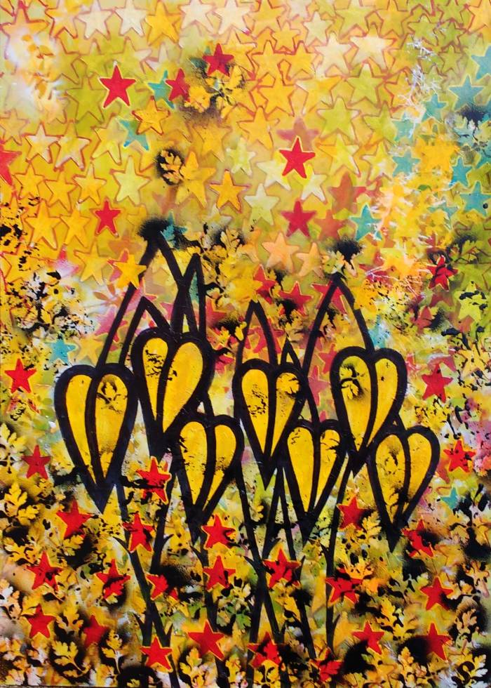 138_sw_manystars_march2018_1 Published February 24, 2019 at 700 × 980 in Cultivate presents Attract (Part Two), an on-line art exhibition… ← Previous Next → 138: SEAN WORRALL – “The Luck of a Thousand Stars” – Acrylic, brushwork, spray paint, marker pen, gloss varnish – 55cm x 75cm, (March 2018)