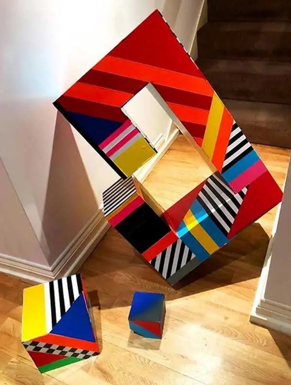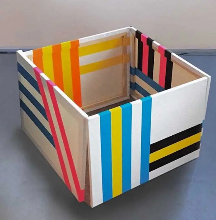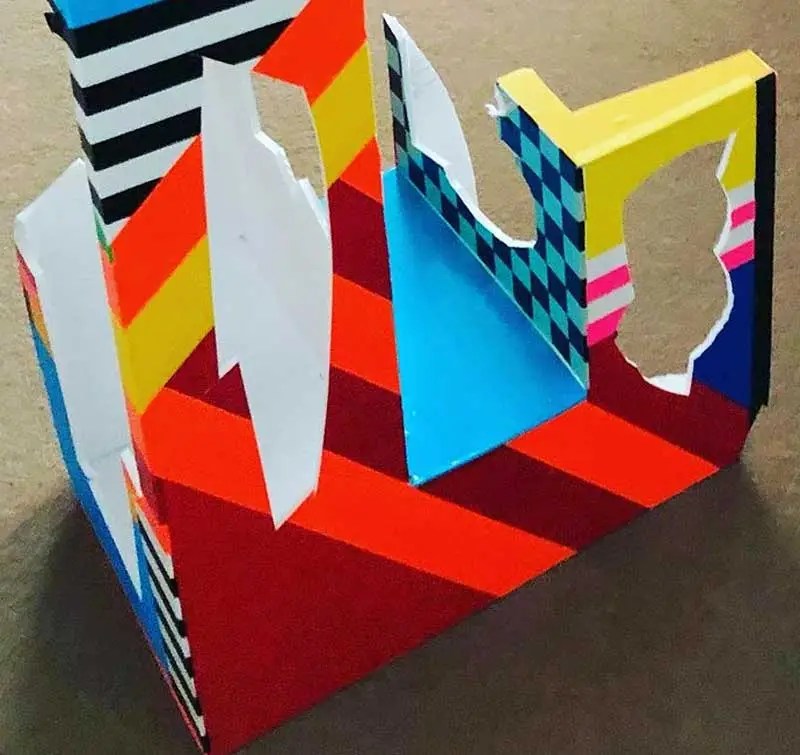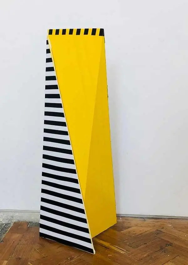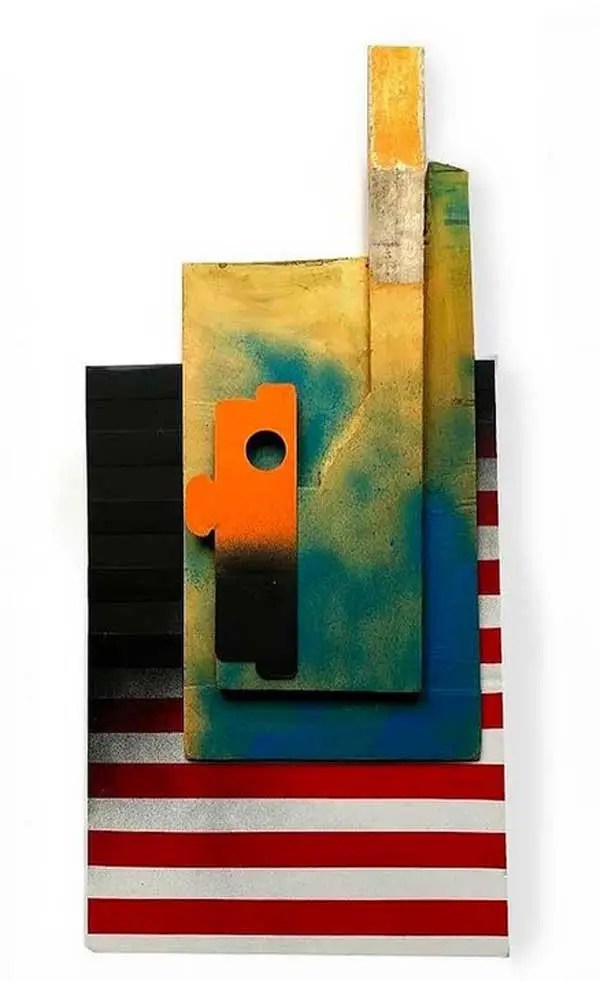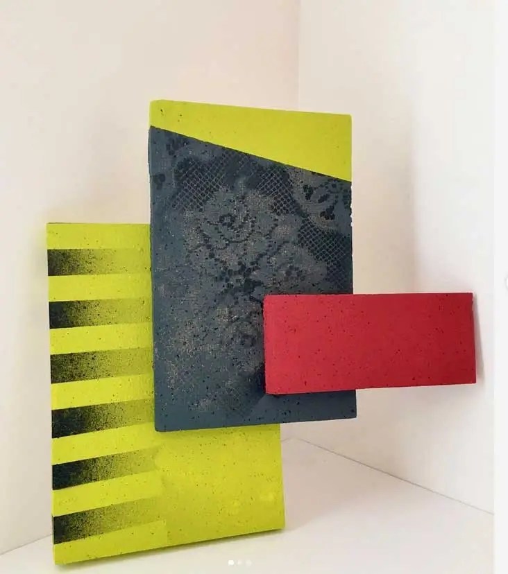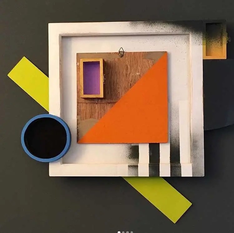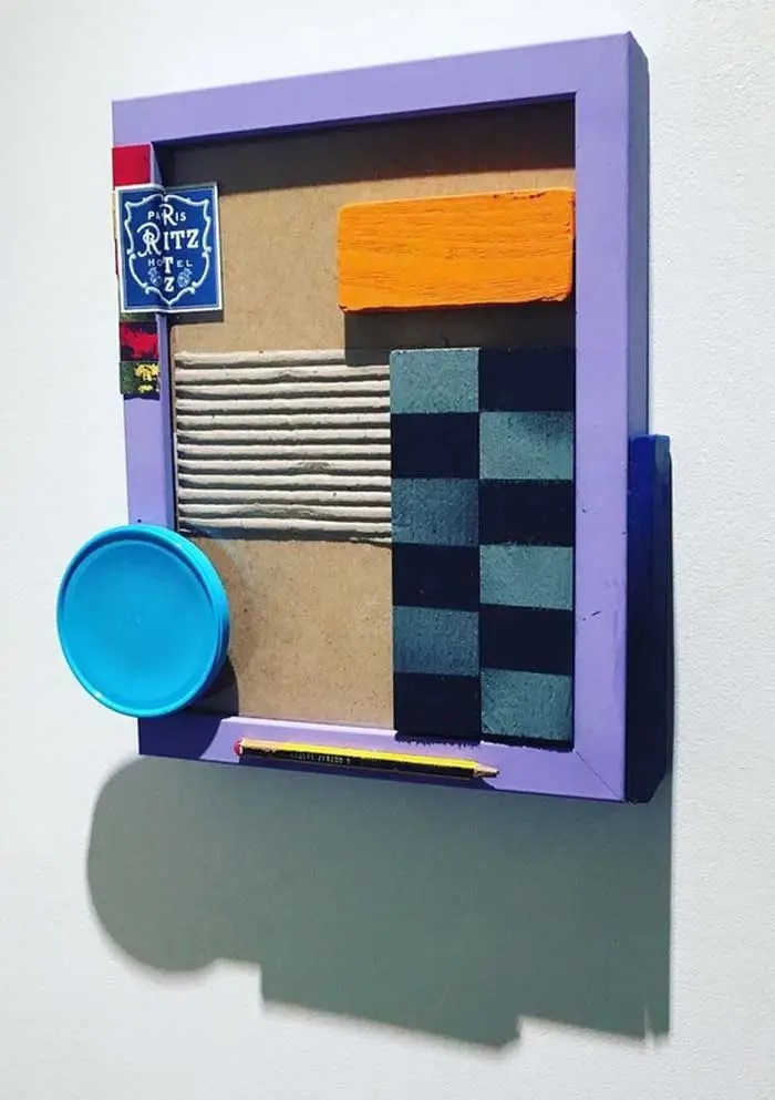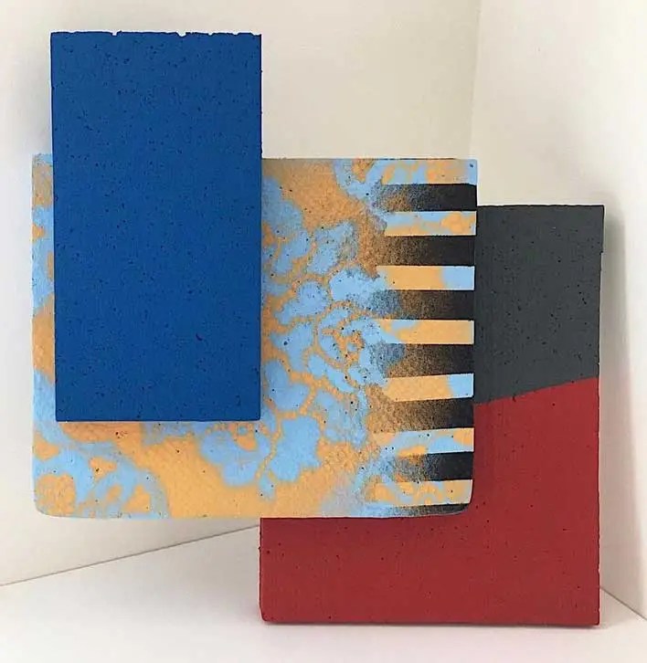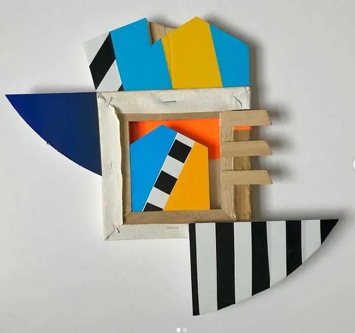“My work is at times paradoxical, utilising maximalist/minimalist aesthetics. I find various objects and defamiliarize their original state and in some cases reference abstract cubism and pop art. The focus and my usages of colour functionality in a fractured confinement, more recently boxed assemblages creating abstract pictorial dialogues. My investigations of found colour and abstract signs explores the effects of light and atmosphere on colour. There is a productive tension in the works sitting between abstraction suggesting formalism and a more sign-like abstraction that is found in this world which provides the means to defamiliarize objects (or the conventional supports). It becomes necessary to source alternative art materials and install work in non-traditional settings, bright colours of electrical tape in Andalucía reflect a bold crispness, or the south-east English coast where shorelines and changing sky tones affect the brilliance and depth of colour. I question my surroundings and by doing so discover new ways of creating and exploring how visual signs and symbols produce meaning”.