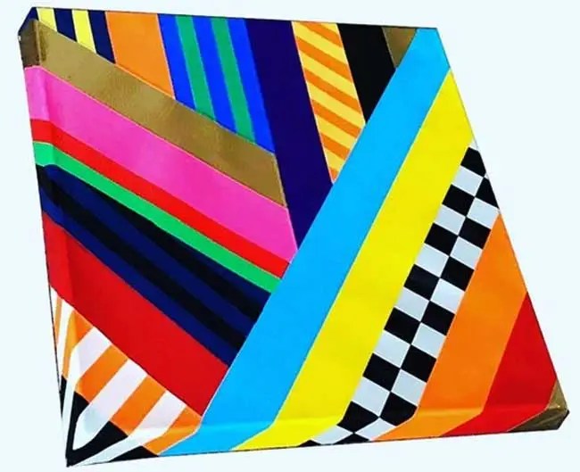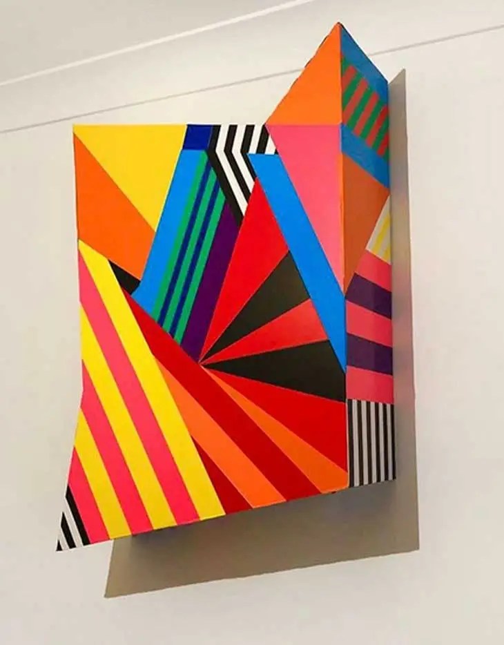 Sad news this morning, we’re sorry to hear of the passing, last week, of artist Peter A. Leigh. Peter, a rather prolific artist based in Kent (where he had been studying in Canterbury), had been a regular participant in Cultivate shows over the last couple of years, indeed he was a strong part of our most recent show Mixtape that opened earlier this month. Peter was always an enthusiastic pro-active participant in our shows, he always took a very full and committed part and we were always happy to invite him back for more. His art excited us, it will continue to excite us, he was indeed a maximalist minimalist, a very brightly coloured one, personally I loved what he called “Geometric Abstraction”.
